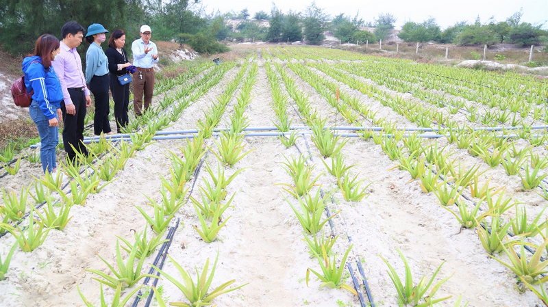 Kiểm tra tiến độ nhiệm vụ KH&CN liên kết: Trồng thử nghiệm cây nha đam gắn với chuỗi liền kết giá trị tại huyện Lệ Thủy