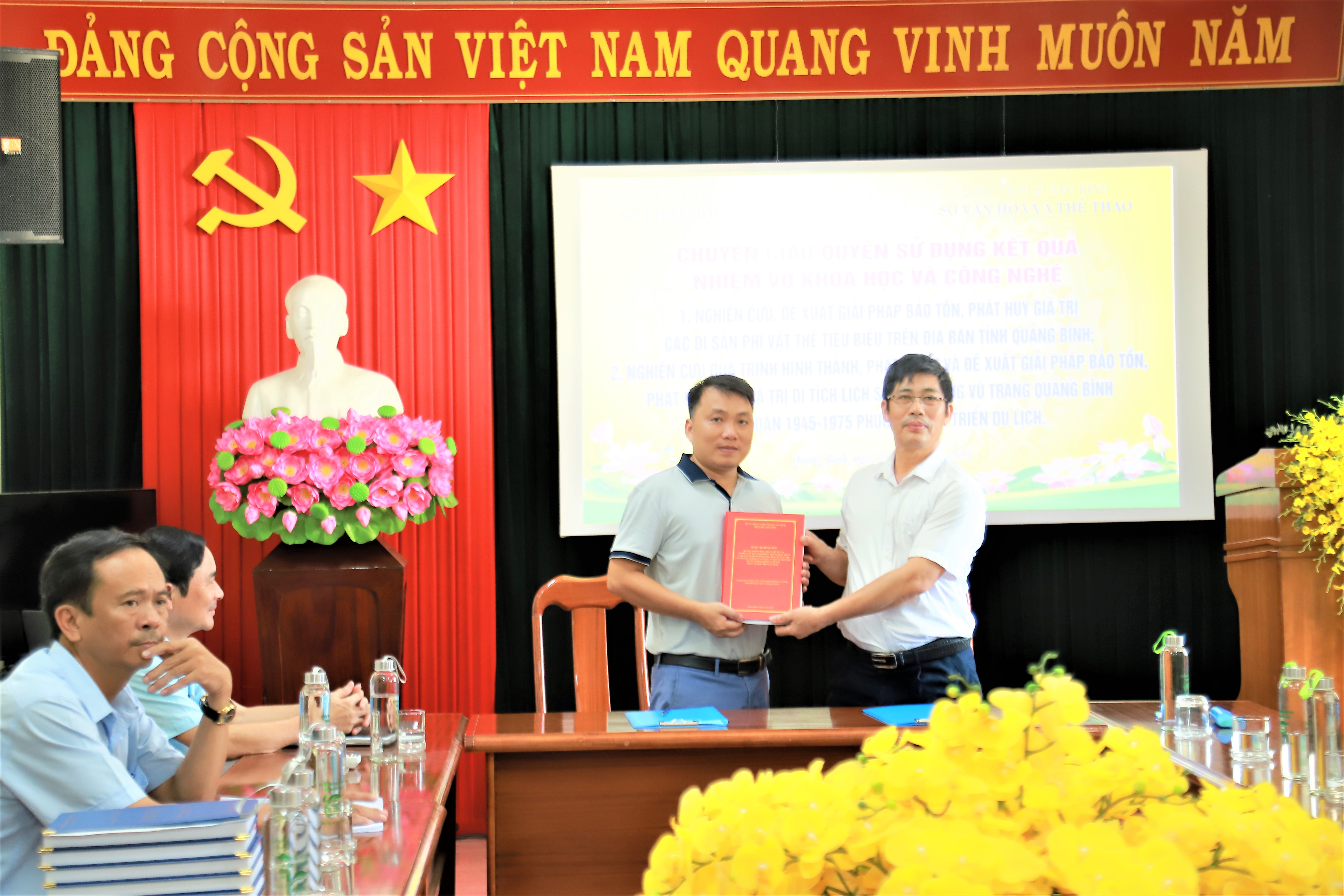 Đại diện Bảo tàng tỉnh nhận hồ sơ chuyển giao từ Sở KH&CN