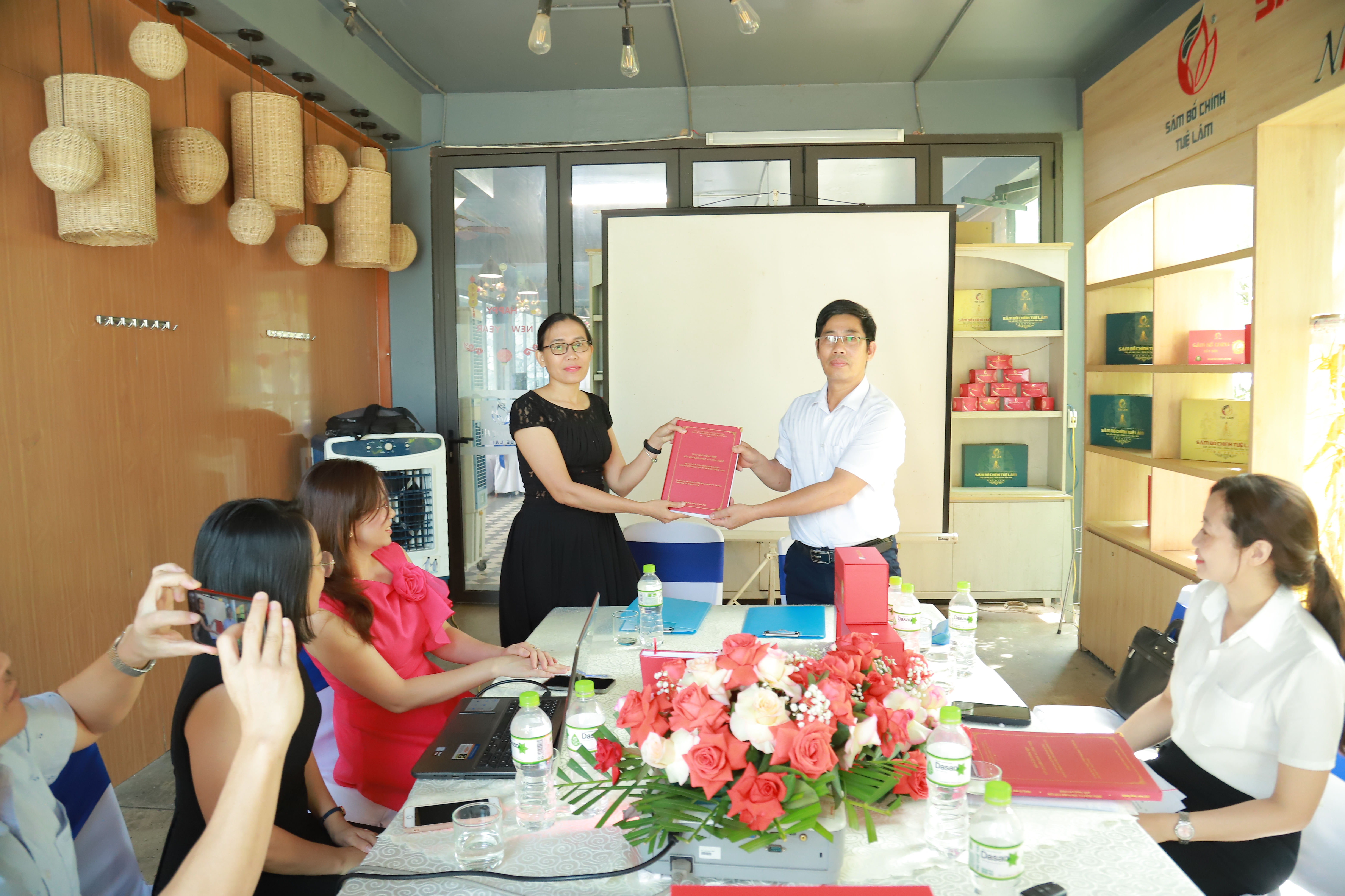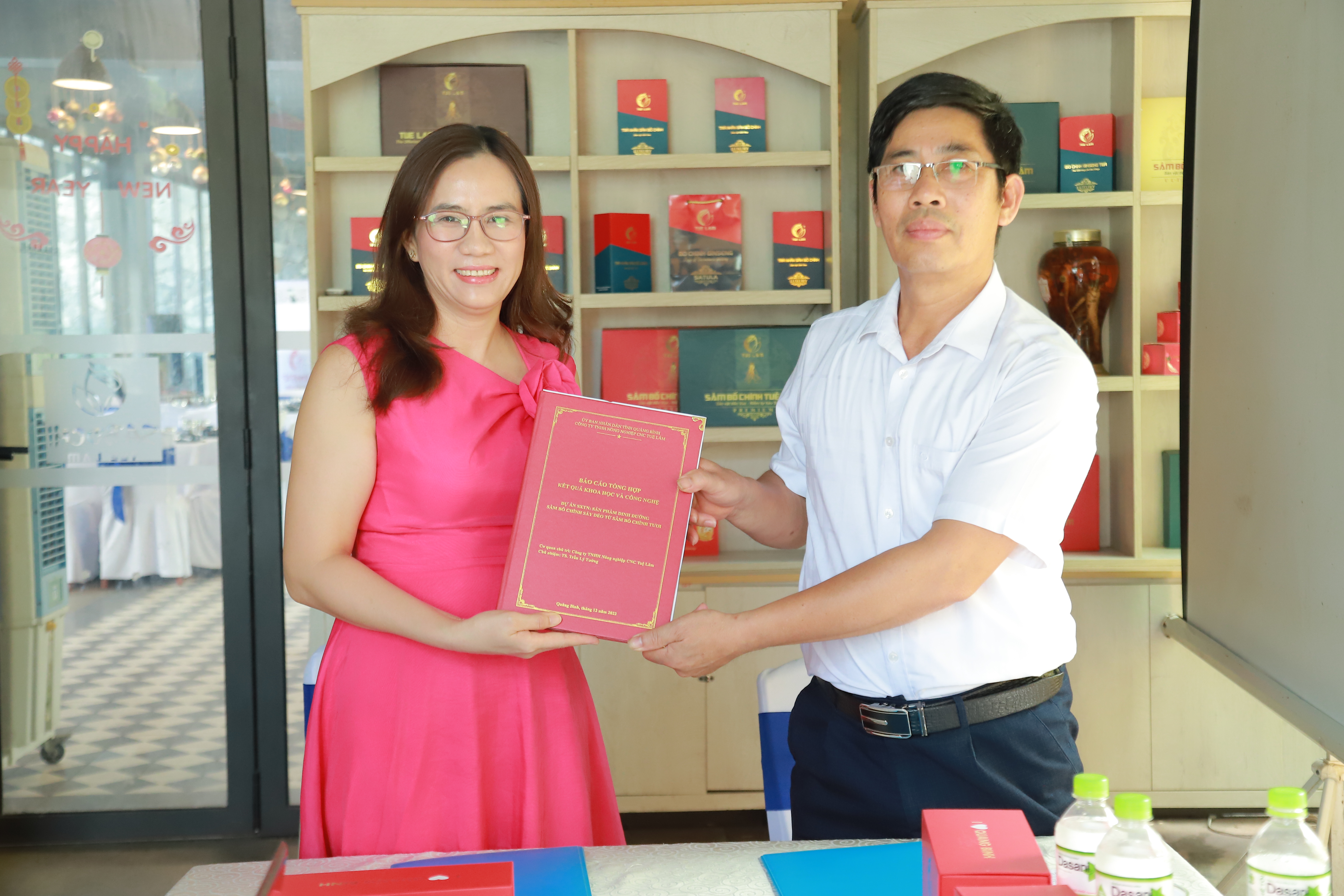 Đại diện Công ty TNHH Nông nghiệp công nghệ cao Tuệ Lâm nhận hồ sơ chuyển giao từ Sở KH&CN