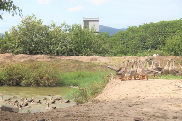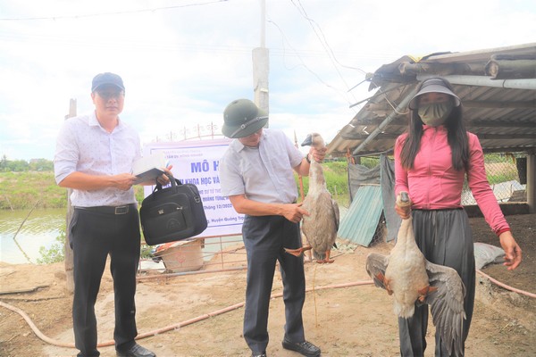 Kiểm tra tiến độ thực hiện nhiệm vụ khoa học và công nghệ liên kết: “Nuôi thử nghiệm ngỗng sư tử theo phương thức bán thâm canh trên địa bàn xã Quảng Tùng, huyện Quảng Trạch”