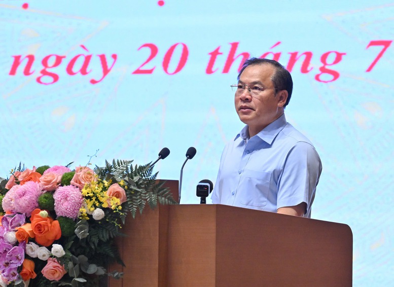 Thứ trưởng Bộ Công an Nguyễn Văn Long điểm lại 10 kết quả nổi bật, đồng thời chỉ ra 3 điểm nghẽn chính trong 6 tháng đầu năm nay - Ảnh: VGP/Nhật Bắc