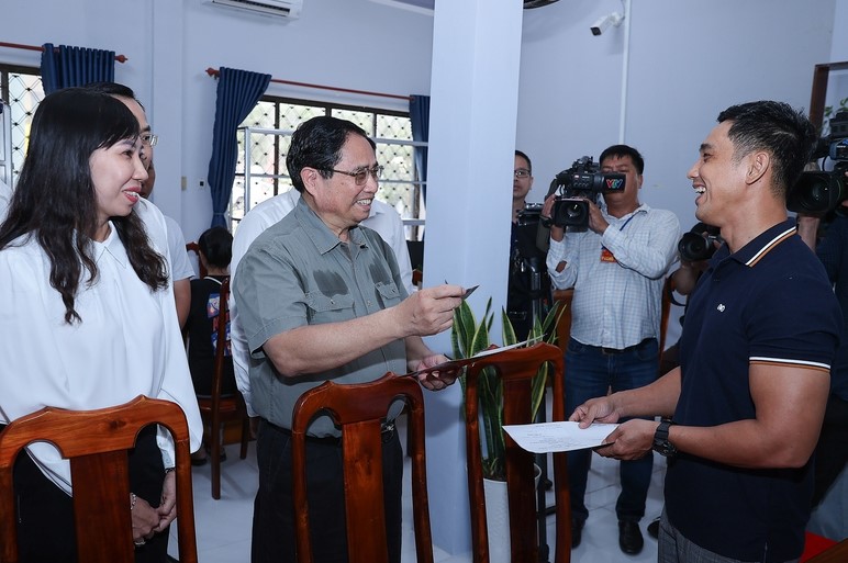 Thủ tướng thăm hỏi người dân tới làm thủ tục hành chính tại phường Thới Sơn, tỉnh An Giang (phường biên giới) - Ảnh: VGP/Nhật Bắc