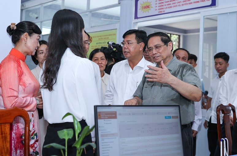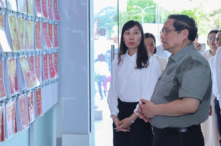 Qua nghe báo cáo và kiểm tra thực tế, Thủ tướng Phạm Minh Chính đánh giá việc vận hành tổ chức bộ máy 2 cấp tại địa phương và hoạt động của các trung tâm phục vụ hành chính công cơ bản suôn sẻ.