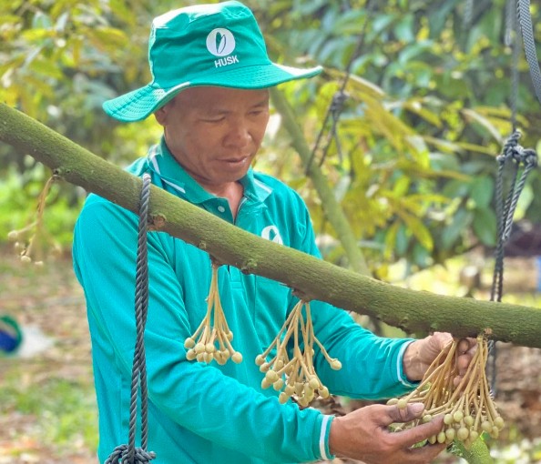 Ngay từ khi bắt đầu trồng sầu riêng vào năm 2017, HTX Đạ M’ri đã khuyến cáo các thành viên canh tác theo hướng hữu cơ nhằm tạo lực cho cây sầu riêng phát triển thuận tự nhiên, giảm sự phụ thuộc quá nhiều vào phân bón và thuốc bảo vệ thực vật hóa học. "Hợp tác xã đã vận động bà con sử dụng các loại phân hữu cơ, phân vi sinh, thuốc bảo vệ thực vật sinh học vào quá trình chăm sóc sầu riêng. Bên cạnh đó, chúng tôi hạn chế sử dụng các loại phân có chì, Cadimi và ưu tiên sử dụng than sinh học bón cho cây để cải tạo, làm đất tươi xốp. Loại than sinh học này có ưu điểm thoát nước vào mùa mưa, tích nước vào mùa khô, tạo ra các khoảng trống trong đất để các vi sinh vật phát triển”, ông Sơn chia sẻ.