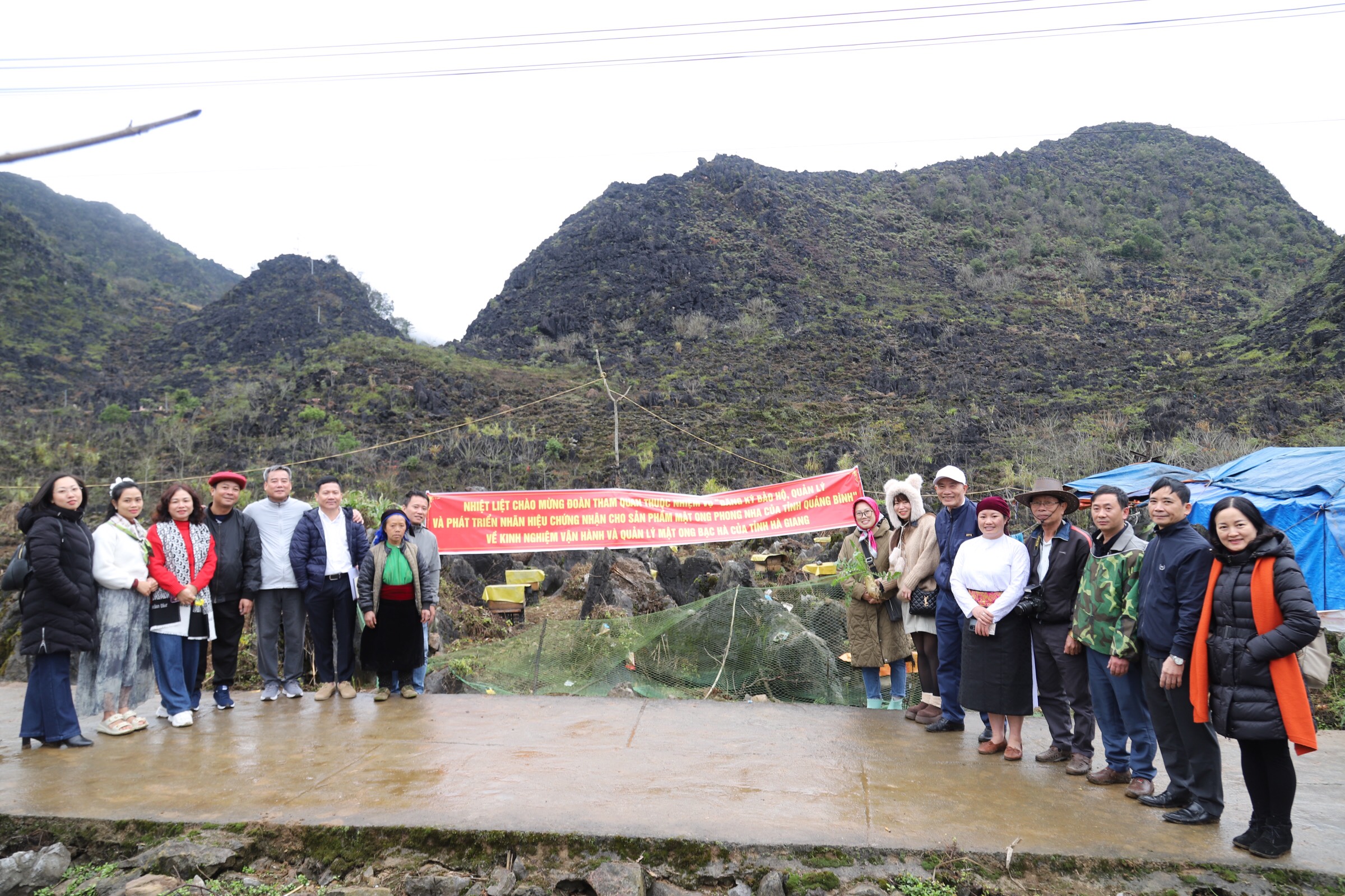 Thực hiện nội dung của nhiệm vụ “Đăng ký bảo hộ, quản lý và phát triển nhãn hiệu chứng nhận cho sản phẩm mật ong Phong Nha của tỉnh Quảng Bình”, từ ngày 20-25/2/2025, Trung tâm Ứng dụng và Thống kê khoa học và công nghệ – Sở Khoa học và Công nghệ tỉnh Quảng Bình đã tổ chức đoàn tham quan học tập kinh nghiệm mô hình vận hành quản lý và phát triển sản phẩm mang nhãn hiệu chỉ dẫn địa lý mật ong bạc hà tại hợp tác xã (HTX) Hà An Thành Ma Tủng, thôn Thành Ma Tủng, xã Sà Phìn, huyện Đồng Văn, tỉnh Hà Giang. Tham gia đoàn có đại diện Cục Sở hữu trí tuệ, đại diện Sở Khoa học và Công nghệ, đại diện các hợp tác xã nuôi ong tại vùng đệm Vườn Quốc gia Phong Nha – Kẻ Bàng, công ty tư vấn và các thành viên của nhiệm vụ.