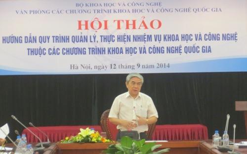 Tại Hội thảo, Bộ trưởng cũng đã giới thiệu những nội dung lớn của Luật KH&CN năm 2013 và chỉ ra những chi tiết cụ thể tác động trực tiếp đến việc triển khai nhiệm vụ KH&CN nói chung và nhiệm vụ thuộc các Chương trình KH&CN quốc gia nói riêng.