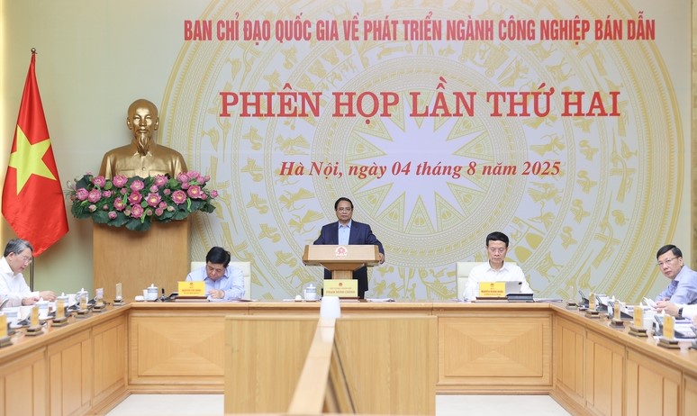 Sáng 4/8, Thủ tướng Chính phủ Phạm Minh Chính, Trưởng Ban Chỉ đạo quốc gia về phát triển ngành công nghiệp bán dẫn chủ trì Phiên họp thứ 2 của Ban Chỉ đạo để đánh giá tình hình triển khai Kết luận của Ban Chỉ đạo tại Phiên họp lần thứ nhất, đồng thời đề ra các nhiệm vụ thúc đẩy phát triển ngành bán dẫn thời gian tới.