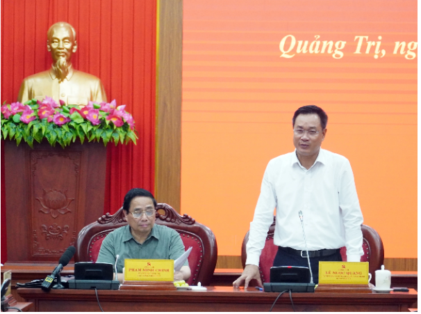 Bí thư Tỉnh ủy Lê Ngọc Quang khẳng định, những chỉ đạo của Thủ tướng là nguồn động viên lớn lao đối với toàn Đảng bộ và Nhân dân tỉnh nhà, Ban Thường vụ Tỉnh ủy nghiêm túc tiếp thu để cụ thể hóa trong thực tiễn với quyết tâm cao nhất. Quảng Trị sẽ phát huy truyền thống cách mạng anh hùng, chung sức, đồng lòng, đoàn kết, phát huy hiệu quả các tiềm năng, lợi thế, huy động mọi nguồn lực để đẩy nhanh tốc độ phát triển kinh tế - xã hội; nâng cao năng lực lãnh đạo và sức chiến đấu của Đảng bộ, phấn đấu đưa tỉnh Quảng Trị phát triển nhanh, bền vững trong kỷ nguyên mới.