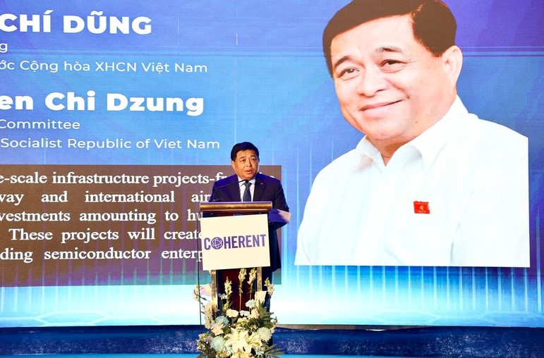 Phó Thủ tướng Nguyễn Chí Dũng nhấn mạnh: Việt Nam đang trở thành "cứ điểm chiến lược" cho các tập đoàn công nghệ lớn hàng đầu thế giới, như NVIDIA, Apple, Google, Qualcomm, Amkor, Marvell, Intel, Meta… và hôm nay là Coherent - Ảnh: VGP/Thu Sa