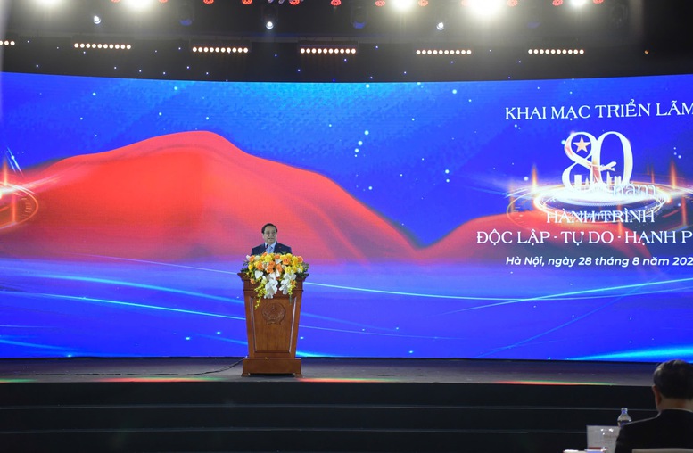 Thay mặt lãnh đạo Đảng, Nhà nước tuyên bố khai mạc Triển lãm "80 năm Hành trình Độc lập - Tự do - Hạnh phúc", Thủ tướng Phạm Minh Chính nêu rõ, Triển lãm là sự kiện đặc biệt quan trọng, không chỉ tôn vinh chặng đường lịch sử vẻ vang, mà còn lan tỏa lòng yêu nước, niềm tự hào dân tộc, khát vọng vươn mình, khẳng định tiềm lực và vị thế Việt Nam trên con đường đổi mới, hội nhập và phát triển bền vững.