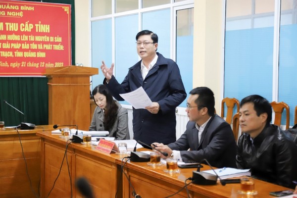 Ngày 21/12/2023, tại Sở Khoa học và Công nghệ, Hội đồng Khoa học nghiệm thu nhiệm vụ KH&CN cấp tỉnh tổ chức nghiệm thu nhiệm vụ: “Nghiên cứu tác động thiên tai và con người ảnh hưởng lên tài nguyên Di sản VQG Phong Nha - Kẻ Bàng làm cơ sở đề xuất các giải pháp bảo tồn và phát triển: Trường hợp tại xã Thượng Trạch, huyện Bố Trạch, tỉnh Quảng Bình”, do Ban quản lý Vườn quốc gia Phong Nha – Kẻ Bàng chủ trì thực hiện. Đồng chí Nguyễn Chí Thắng, TUV, Giám đốc Sở Khoa học và Công nghệ, Chủ tịch Hội đồng Khoa học nghiệm thu nhiệm vụ, chủ trì hội nghị.