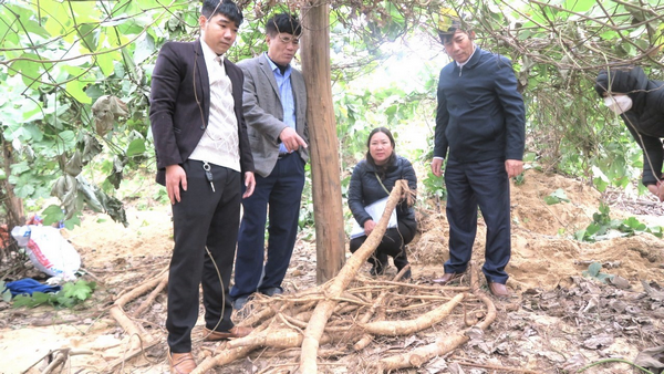 Qua báo cáo của cơ quan chủ trì và kiểm tra thực tế cho thấy, cơ quan chủ trì và chủ nhiệm nhiệm vụ đã hoàn thành cơ bản các nhiệm vụ theo đúng thuyết minh đề ra, cụ thể: Chỉ đạo cán bộ kỹ thuật thường xuyên kiểm tra theo dõi tình hình sinh trưởng, phát triển của cây giống; chỉ đạo việc chăm sóc theo đúng quy trình kỹ thuật. Trồng dặm đủ số lượng theo thuyết minh; Chăm sóc, theo dõi tình hình phát triển của sắn dây. Cụ thể: Sau 03 tháng trồng: chiều dài dây chính trung bình 2,5 - 3m; đường kính gốc 0,1cm, mỗi cây ra 3 nhánh, bình quân mỗi nhánh 5 lá. Từ 8 tháng sau trồng cây sinh trường phát triển mạnh tăng trưởng nhanh về đường kính, đường kinh gốc trung bình đạt 3,8 cm.