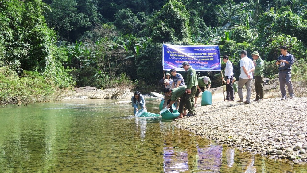 Sáng ngày 5/12/2024, tại Trạm Khe Nước Trong, Khu Dự trữ Thiên nhiên Động Châu – Khe Nước Trong, Trường Đại học Quảng Bình tổ chức thả tái tạo 13.000 cá giống cá niên về môi trường tự nhiên. Đây là hoạt động trong nhiệm vụ khoa học và công nghệ: “Nghiên cứu đặc điểm sinh học và thử nghiệm sản xuất giống cá niên (Onychostoma gerlachi Peters, 1881) tại tỉnh Quảng Bình” do Trường Đại học Quảng Bình chủ trì thực hiện. Tham gia hoạt động có đại diện lãnh đạo Sở Khoa học và Công nghệ, Khu Dự trữ Thiên nhiên Động Châu – Khe Nước Trong, Chi cục Thủy sản, Trung tâm Giống Thủy sản Quảng Bình và các đơn vị liên quan.