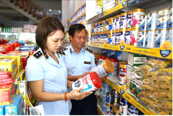 Đội quản lý thị trường huyện Bảo Thắng (Cục quản lý thị trường tỉnh Lào Cai (cũ)) kiểm tra mặt hàng sữa bột nhập ngoại tại siêu thị trên địa bàn. Ảnh tư liệu: Quốc Khánh/TTXVN