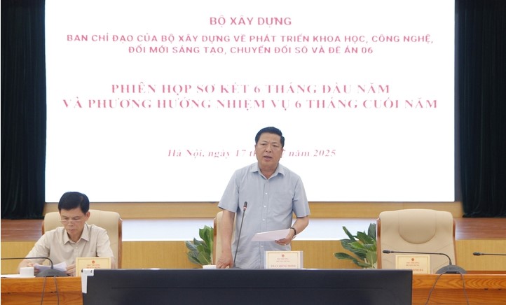 Báo cáo về tình hình triển khai các nhiệm vụ về phát triển khoa học công nghệ, đổi mới sáng tạo, chuyển đổi số và Đề án 06 trong 6 tháng đầu năm 2025, Giám đốc Trung tâm công nghệ thông tin (Bộ Xây dựng) Lê Thanh Tùng cho biết, tính đến hết tháng 6/2025, Bộ Xây dựng được giao 71 nhiệm vụ, đã hoàn thành 20 nhiệm vụ. Các nhiệm vụ của Bộ Xây dựng đều thực hiện đúng hạn.