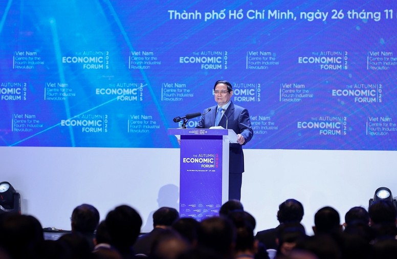 Sáng 26/11, tại TPHCM, Thủ tướng Phạm Minh Chính dự và có bài phát biểu quan trọng tại chương trình khai mạc và phiên toàn thể Diễn đàn Kinh tế mùa Thu lần thứ nhất năm 2025 với chủ đề: "Chuyển đổi xanh trong kỷ nguyên số".