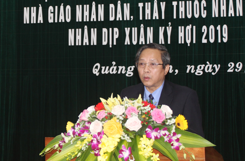 Phát biểu tại buổi gặp mặt, Bí thư Tỉnh ủy chúc mừng sức khỏe các Giáo sư, Phó Giáo sư, Tiến sĩ, Nhà giáo Nhân dân, Thầy thuốc Nhân dân nhân dịp năm mới 2019. Đồng chí nhấn mạnh, cán bộ khoa học nói riêng và đội ngũ trí thức nói chung có quan hệ khăng khít với sự hưng thịnh của quê hương, đất nước. Đối với Quảng Bình, mặc dù có nhiều tiềm năng, lợi thế nhưng chưa được khai thác triệt để, việc phát huy nhân tố con người, đặc biệt nguồn nhân lực có chất lượng cao là yếu tố quyết định đối với sự phát triển của tỉnh. Thời gian tới, đồng chí đề nghị và mong các tổ chức hội, tổ chức nghiên cứu, cơ quan quản lý khoa học công nghệ, đội ngũ nhà khoa học, Nhà giáo Nhân dân, Thầy thuốc Nhân dân cùng đội ngũ trí thức trong toàn tỉnh tiếp tục nêu cao tinh thần trách nhiệm, tích cực lao động, sáng tạo, có thêm nhiều tác phẩm, đề án, công trình nghiên cứu có giá trị thực tiễn cao đóng góp vào sự phát triển kinh tế - xã hội của tỉnh...