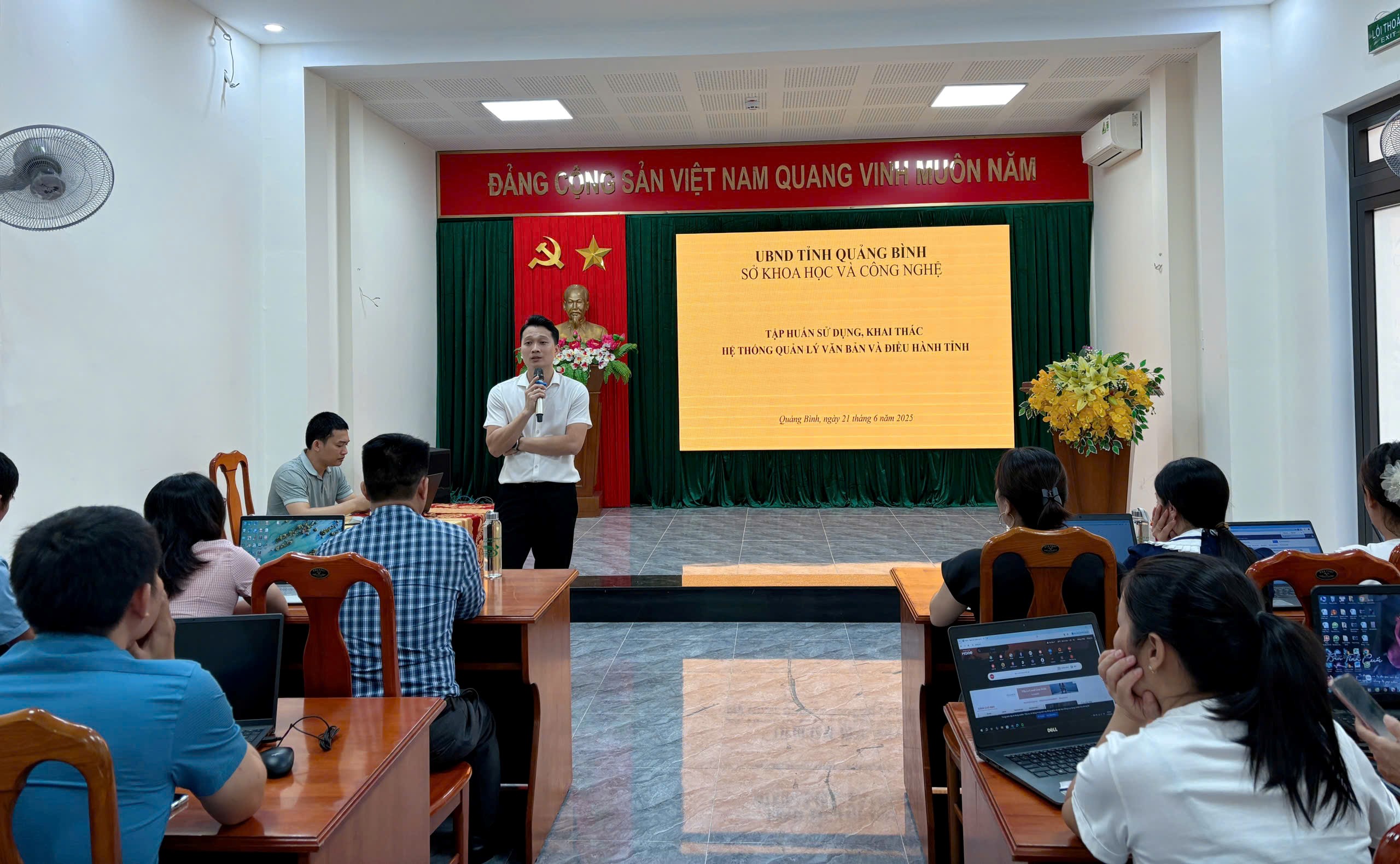 Thực hiện Kế hoạch số 1358/KH-UBND ngày 16/6/2025 của UBND tỉnh Quảng Bình, ngày 21/6/2025, Sở Khoa học và Công nghệ tỉnh Quảng Bình đã chủ trì tổ chức lớp tập huấn chuyên sâu về quản trị và ứng dụng Hệ thống quản lý văn bản và điều hành.