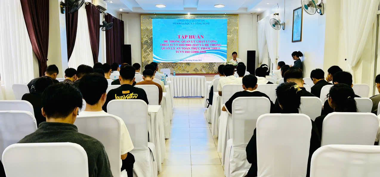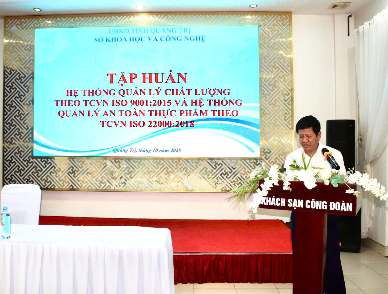 Trong hai ngày 16-17/10/2025, Sở Khoa học và Công nghệ tỉnh Quảng Trị đã tổ chức hai lớp tập huấn chuyên đề về Hệ thống quản lý chất lượng theo TCVN ISO 9001:2015 và Hệ thống quản lý an toàn thực phẩm theo TCVN ISO 22000:2018. Đối tượng tham dự là sinh viên đến từ các trường đại học, cao đẳng nghề trên địa bàn phía Nam tỉnh Quảng Trị.