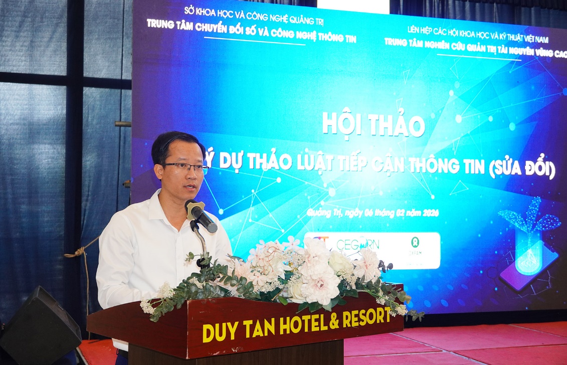 Sáng ngày 06/02/2026, Trung tâm Chuyển đổi số và Công nghệ thông tin, Sở Khoa học và Công nghệ tỉnh Quảng Trị phối hợp với Trung tâm Nghiên cứu Quản trị tài nguyên vùng cao tổ chức Hội thảo góp ý dự thảo Luật Tiếp cận thông tin (sửa đổi). Đây là một trong những hoạt động trọng tâm của Dự án “Tăng cường tiếp cận thông tin thông qua chuyển đổi số trong quản lý bền vững tài nguyên thiên nhiên và bảo vệ môi trường” (Dự án NRM) do tổ chức Stichting Oxfam NOVIB tại Việt Nam tài trợ. Hội thảo có sự tham dự của đại diện các sở, ban, ngành, địa phương, cơ sở đào tạo, tổ công nghệ số cộng đồng và các chuyên gia trong lĩnh vực pháp luật.